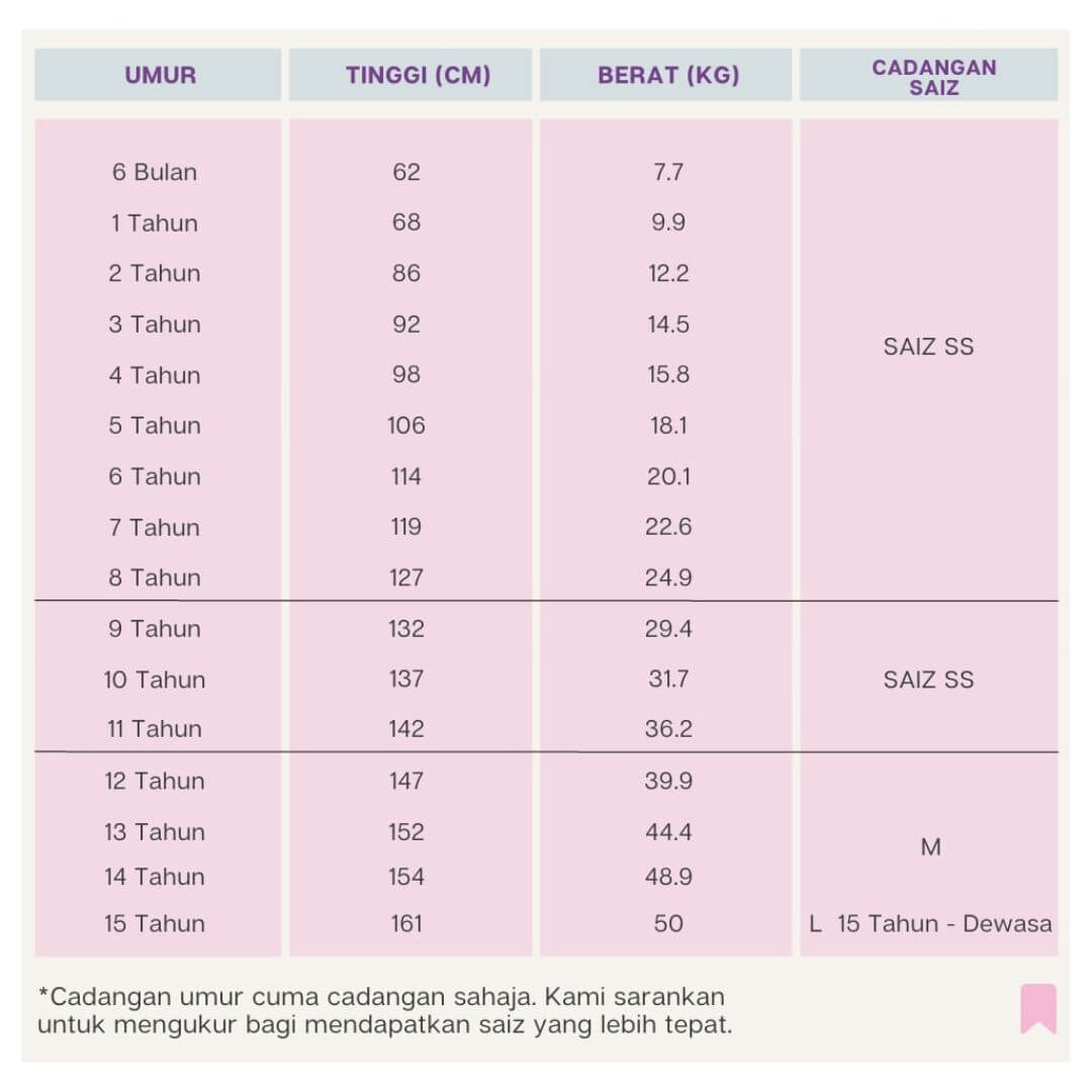 Boleh terus Wasap kami 60111913034, dan kami akan uruskan pertukaran size yang sesuai. Kami sarankan sebelum membuat pesanan ibu ibu sudah mengukur dahulu size yang sesuai untuk anak puan