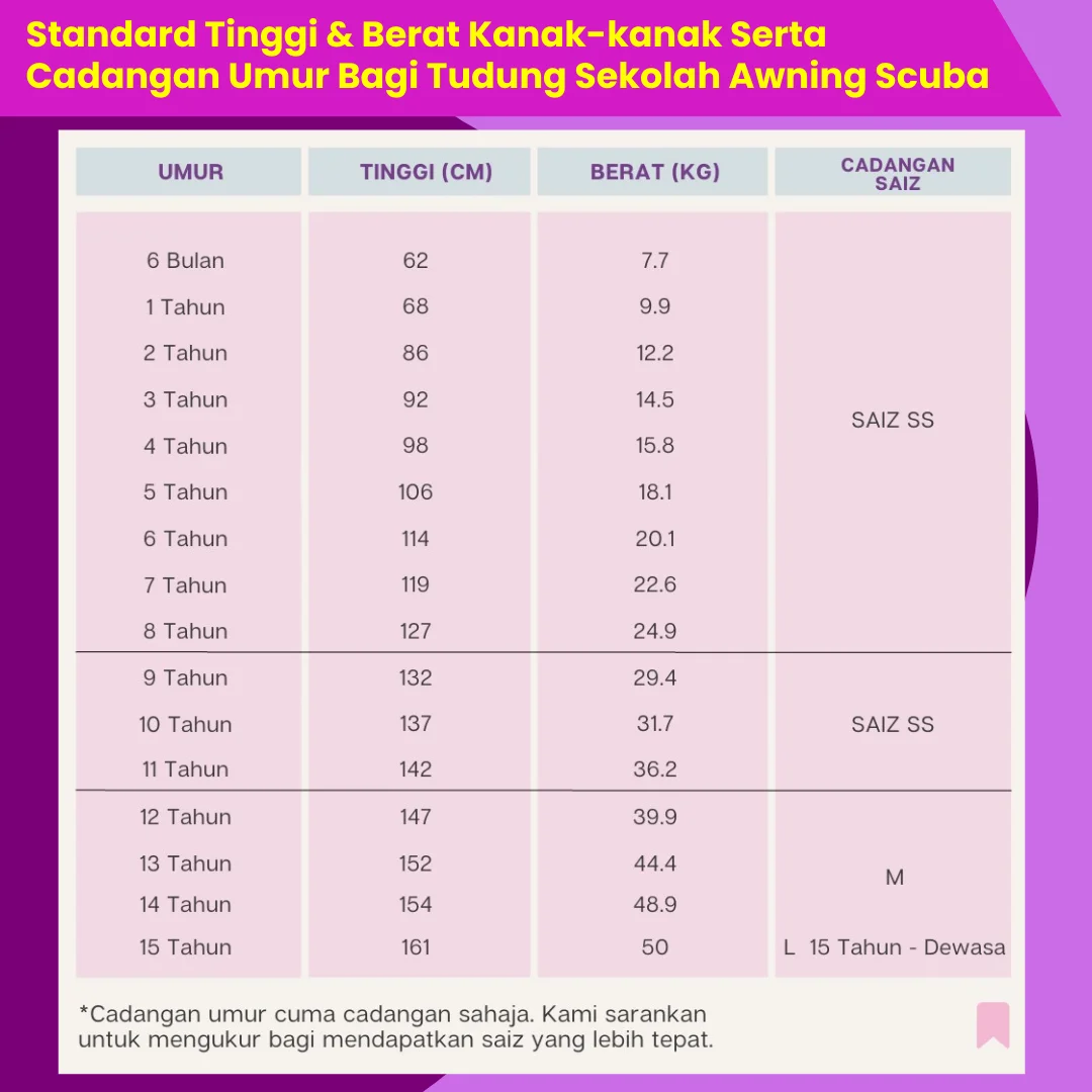 # Size S sesuai untuk Si Comel berusia 8 โ 11 tahun (bersaiz badan kecil).