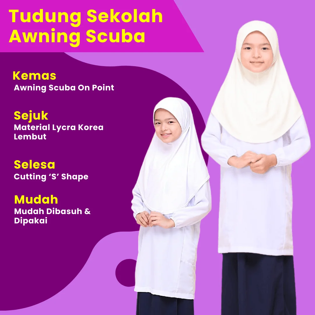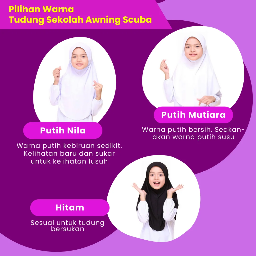 Matching Tudung Sekolah Awning Scuba bersama Inner Rainbow kita.